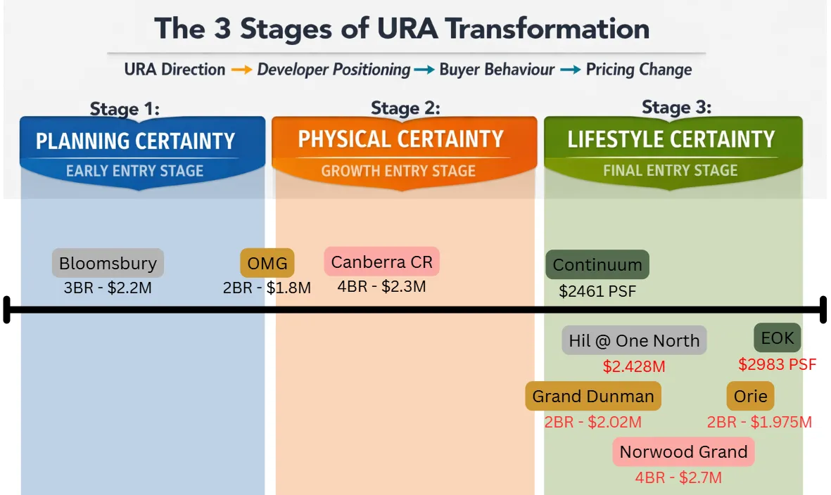 Notice the price gap. Projects in earlier certainty stages enter at significantly lower PSF.